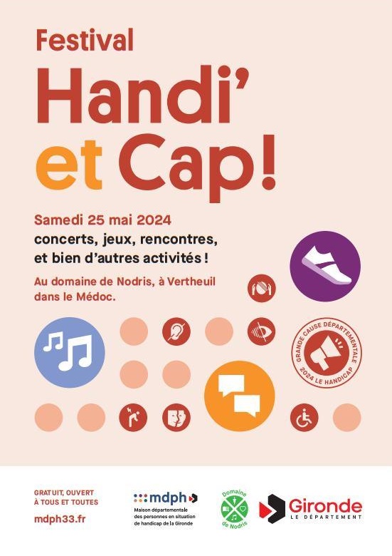En cette année de grande cause départementale consacrée au handicap, le Département invite les Girondines et les Girondins au Festival Handi’ et Cap, le 25 mai, au domaine départemental de Nodris à Vertheuil.