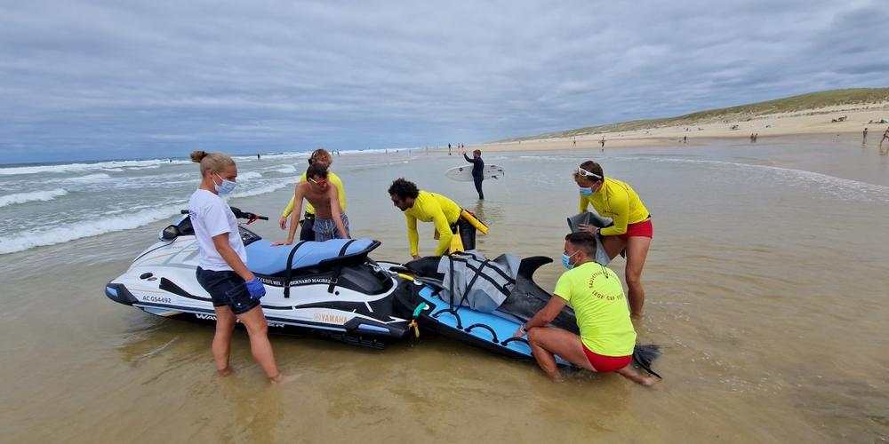 Sous les regards vigilants des baigneurs, et avec les conseils du Pelagis (observatoire des oiseaux et mammifères marins), et la mise en alerte de l’Office français de la biodiversité (OFB), les Maîtres-Nageurs Sauveteurs (MNS) sontfinalement parvenus à venir en aide au cétacé.
