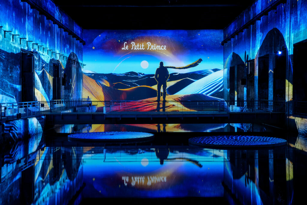 Inaugurée le 18 octobre 2024, l’exposition “Le Petit Prince : L’odyssée immersive” est le fruit d’une collaboration entre Culturespaces et la Succession Antoine de Saint-Exupéry. Conçue spécialement pour les Bassins des Lumières, cette création inédite invite les visiteurs à redécouvrir le chef-d’œuvre intemporel de Saint-Exupéry sous un angle nouveau. Les aquarelles emblématiques et les mots poétiques de l’auteur prennent vie sur les murs et les sols, transformant l’espace en un univers où l’imaginaire n’a pas de limites. Les roses, les renards et les serpents s’animent, et le public est transporté de désert en prairie, de planète en planète, suivant le Petit Prince dans sa quête de compréhension et d’apprivoisement du monde qui l’entoure. Cette immersion poétique est une invitation à regarder au-delà des apparences et à retrouver notre capacité d’émerveillement. L’exposition se poursuit jusqu’au 29 janvier 2025.